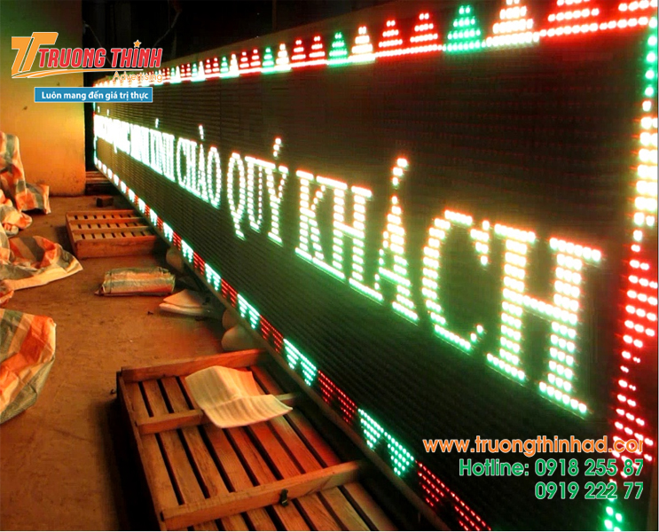 Biển đèn Led chạy chữ khi vừa mới ra đời đã được nhiều khách hàng đánh giá cao. Nó có tính đột phá về công nghệ khi có thể thay đổi thông tin xuất hiện trên biển quảng cáo, trong khi các biển hiệu truyền thống có chữ, hình ảnh “cố định”. Từ những bóng đèn led nhỏ đầy màu sắc sặc sỡ, đẹp mắt được ghép lại với nhau thành chữ (tiếng việt, tiếng Anh, tiếng Trung), logo, hình ảnh như mong muốn, rồi thiết lập hiệu ứng xuất hiện chữ theo yêu cầu của khách hàng là ta có được 1 tấm biển đèn Led chạy chữ đẹp. Người thiết kế dựa vào thông tin mà khách hàng yêu cầu rồi lập trình font chữ, màu chữ, cách xuất hiện (trái qua phải, trên xuống dưới…).