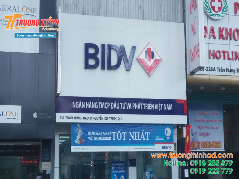 Trường Thịnh chuyên nhận thiết kế, thi công tất cả các loại hộp đèn, bảng hiệu quảng cáo như: bảng hiệu đèn led, bảng hiệu alu, bảng hiệu Mica, bảng hiệu Pano, Hiflex, bảng hiệu gỗ, chữ nổi Mica, Inox chống ăn mòn… Dù sử dụng loại vật liệu rẻ, hay mắc, có ưu nhược điểm như thế nào cũng đều có thể tạo ra những biển quảng cáo đẹp nhất nếu biết cách thiết kế, thi công khéo léo, chuẩn xác.